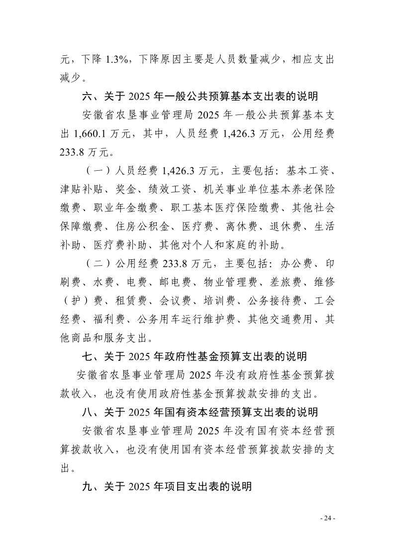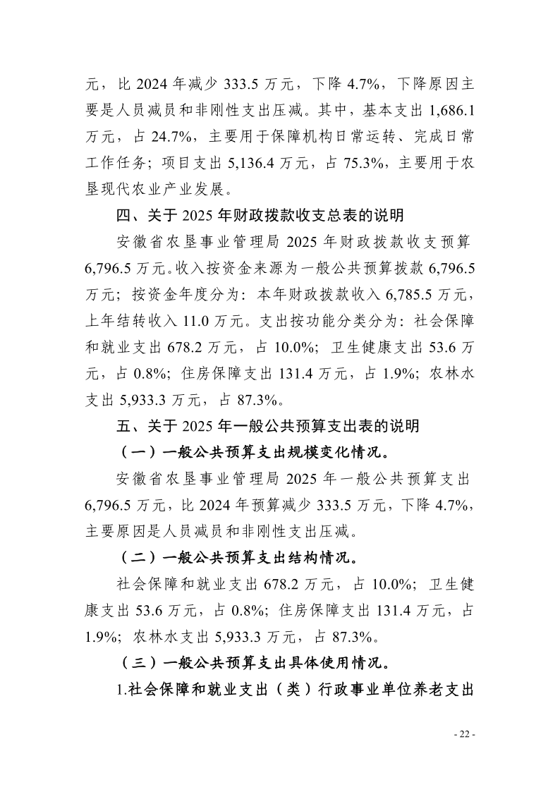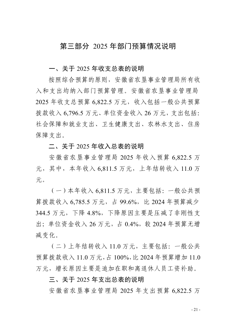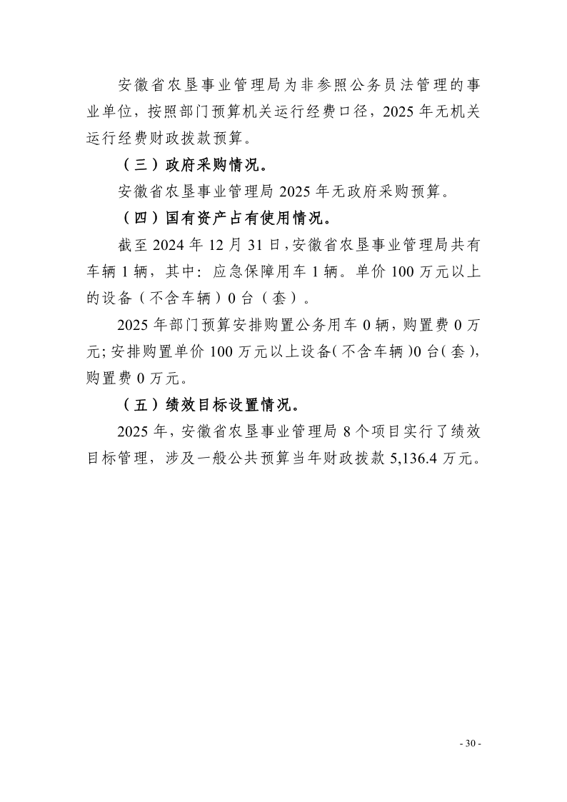 安徽农垦集团:安徽省农垦事业管理局2025年度项目支出绩效目标