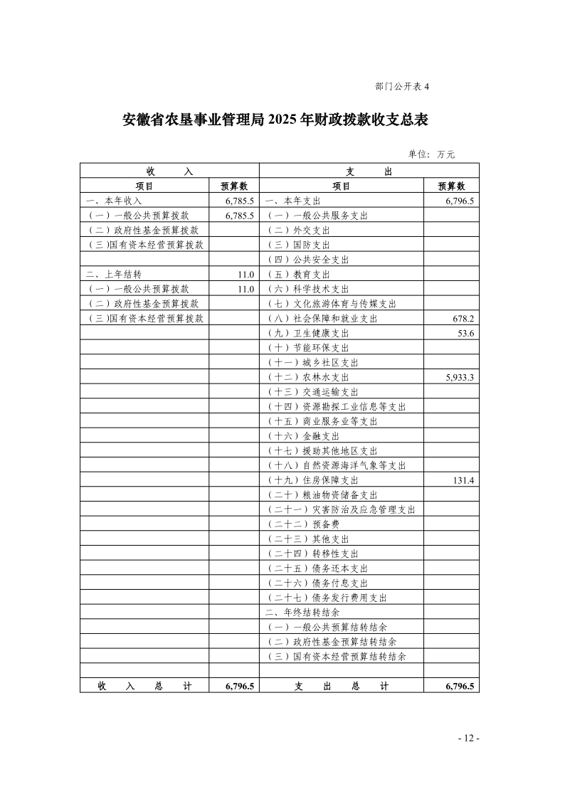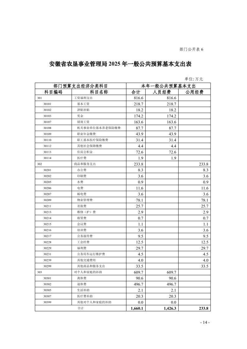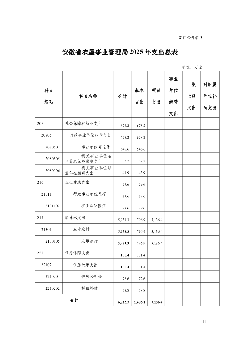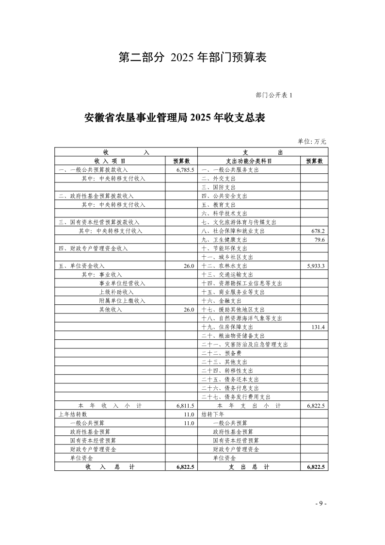 安徽农垦集团:安徽省农垦事业管理局2025年度项目支出绩效目标