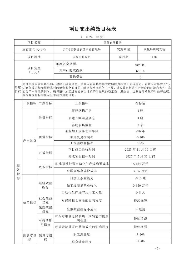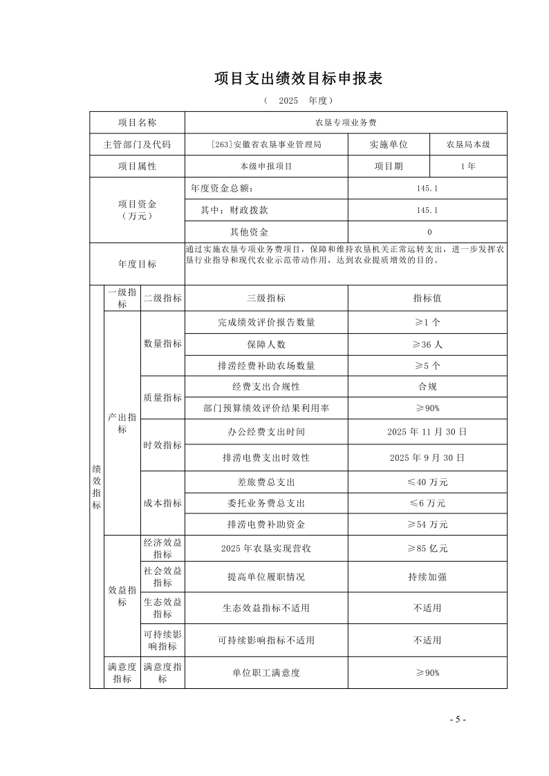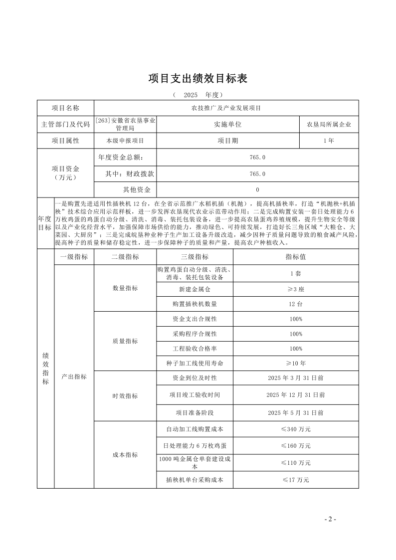 安徽农垦集团:安徽省农垦事业管理局2025年度项目支出绩效目标.pdf