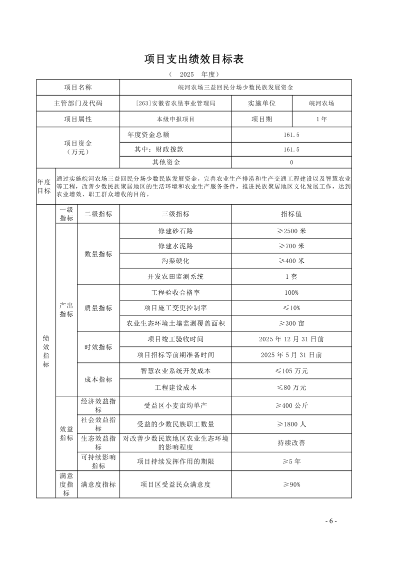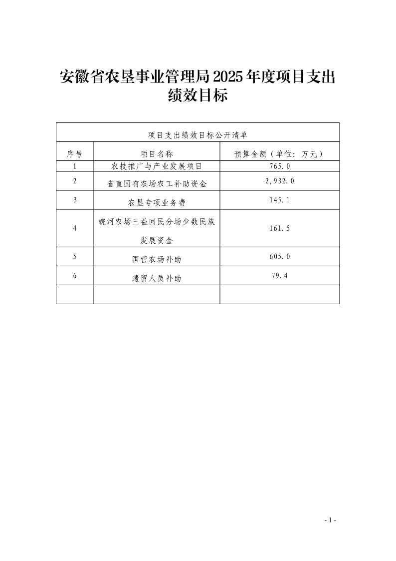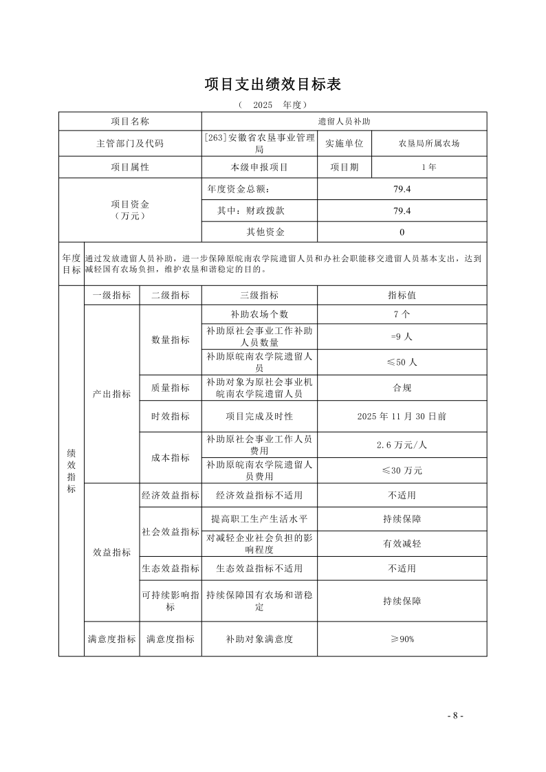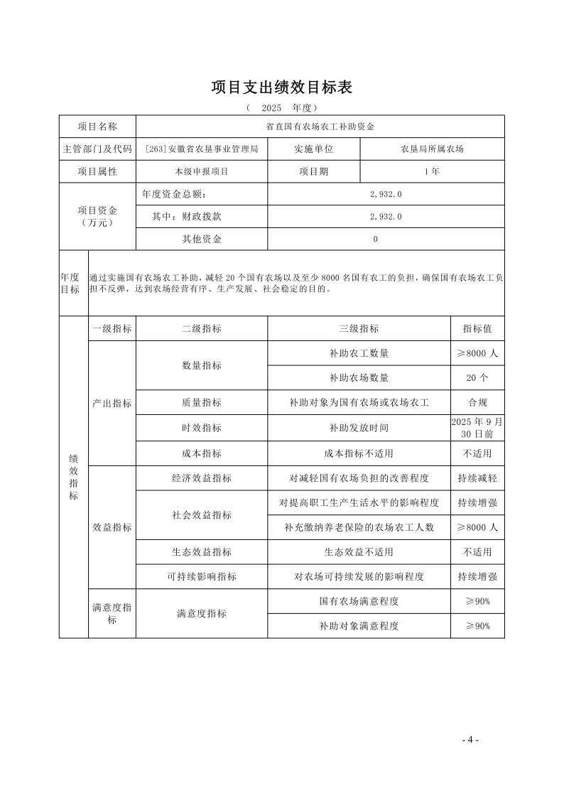 安徽农垦集团:安徽省农垦事业管理局2025年度项目支出绩效目标.pdf