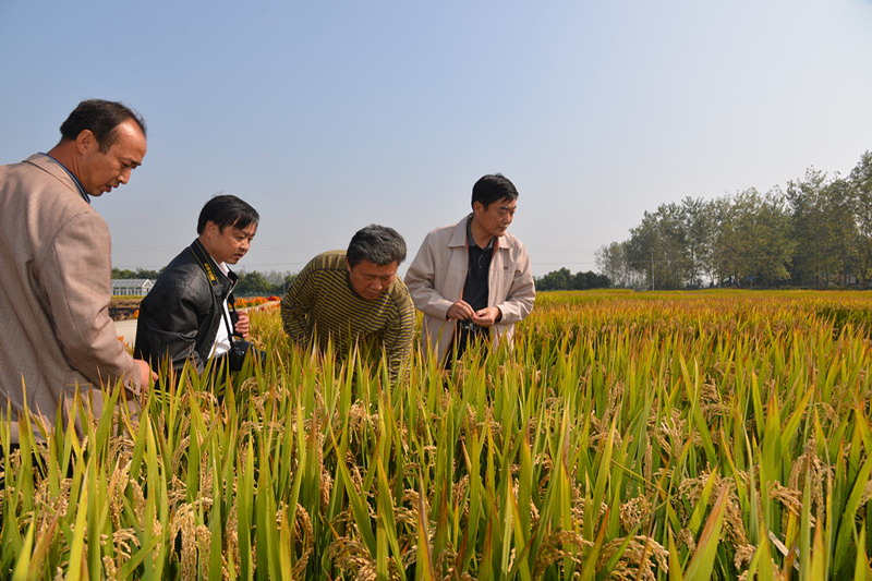 大圹圩农场水稻品种时下正值收获期,是深入了解新品种田间表现和特征特性的最佳时期。10月22日,滁州市农委总农艺师李广厚、育种专家黄自安一行考察了农场农科所水稻新品种。
