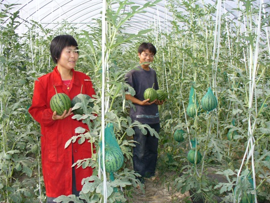 安徽省农垦龙亢农场利用标准化薄膜温室引种的天使1号、4号系列西瓜经过75天的生长期,5月25日开园采摘,上市后每亩产出1万多元,效益4000多元,同时采摘的还有黄籽金玉香瓜、 圣女系列樱桃番茄等。引种、 实验特色蔬菜与瓜果品种是该场调整种植结构、实施农业标准化生产的一项重要举措,为此农场投入20多万元,新建薄膜温室10亩,不仅一年可以创造近30万元的效益,而且带动了农场特色蔬菜、瓜果的生产,对周边农村也起到良好的示范带动作用。