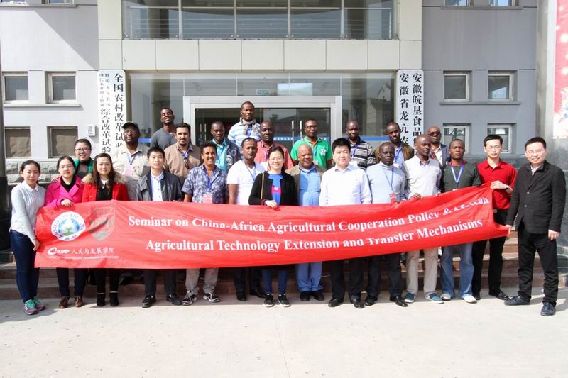 31617日,来华参加教育部援外培训班学员——津巴布韦、坦桑尼亚等非洲七国20位政府官员和农业学者,组团到访安徽农垦,实地考察了龙亢、寿西湖两个农场的现代农业建设成就。中国农大人文与发展学院、安徽农垦集团外经部有关负责人陪同考察,两场领导缪向阳、朱为荣、王国福、陈劲松、崔怀龙参加接待并介绍情况,